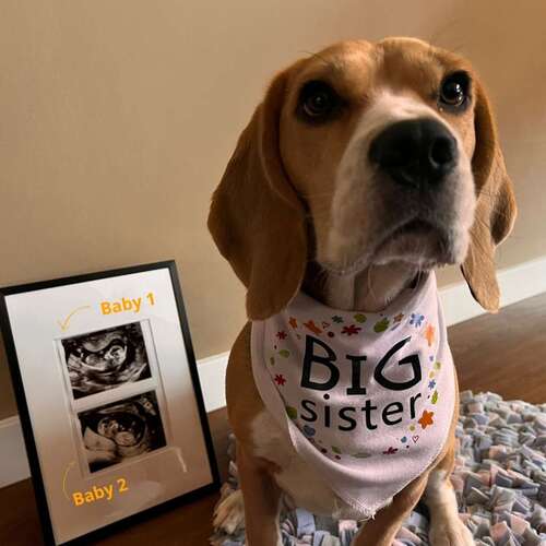 Gewoon foto van mijn dochter die de echofoto's vasthoudt & daarbij de tekst dat ze een zusje verwacht in Juni. 💕