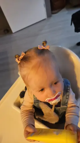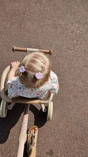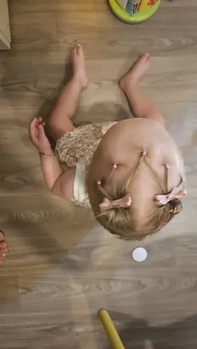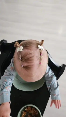 Ik heb dat laatst geprobeerd? Maar daar zijn de haartjes voorop haar hoofd nog te kort voor, hoe verder naar achter hoe langer de worden hahah, wel echt super schattig 🥰