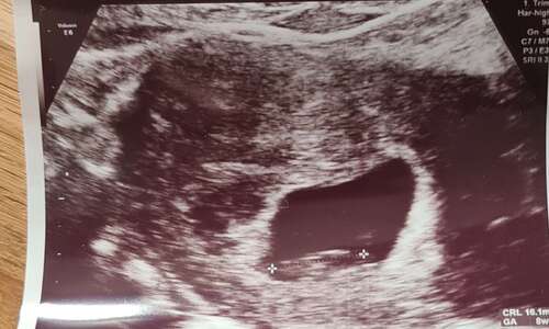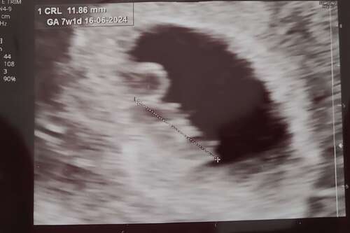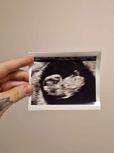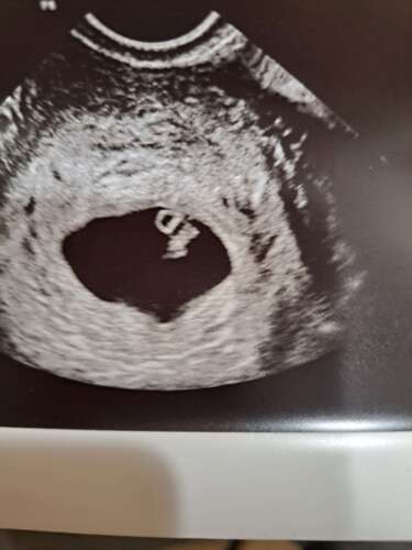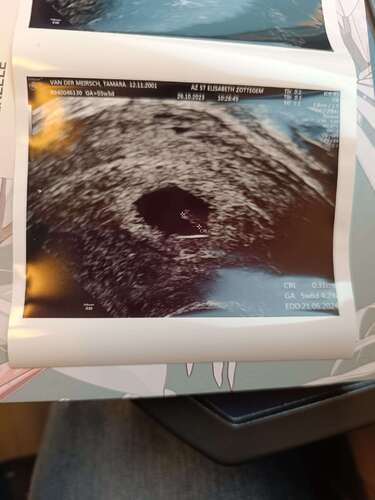 Hier mijne van afgelopen maandag ❤️ Vraag mij alleen af wat dat "dingetje" erboven is..zij wist het zelf niet echt te zeggen. Heb wel al een aantal dagen roze/bruine afscheiding. Ze zij dat dat misschien een wondje ofzo kon zijn met bloed ? Iemand een idee? Of herkenning??