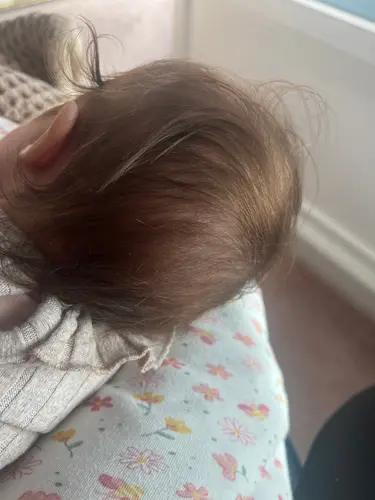 Achterkant komt heel vaak een kale plek, van het vele liggen op de rug. Als ze op de buik liggen is dat minder. Haar valt bij sommige baby's wat uit. Niks geks.