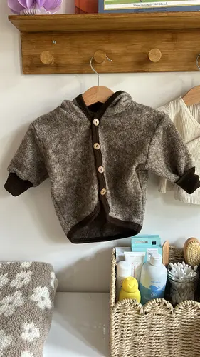 Ik heb ook een wollen jasje van Cosilana. Die ze als het goed is 2/3 maatjes lang aan. Via Vinted gekocht!