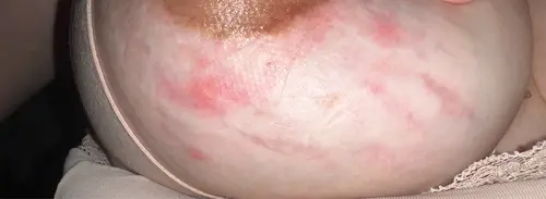 Zo zag mijn borst ontsteking eruit ik kreeg hele grote borsten helemaal opgezwollen en voelde enorm warm aan als je het gevoel hebt dat je een borst ontsteking zult krijgen neem direct actie! Ik had kolen gekocht in de diepvries / koelkast even gelegd en direct op beide borsten gelegd me ontsteking was na 2 dagen weg! ( Hou je koorts in de gaten en neem direct actie bij twijfel )