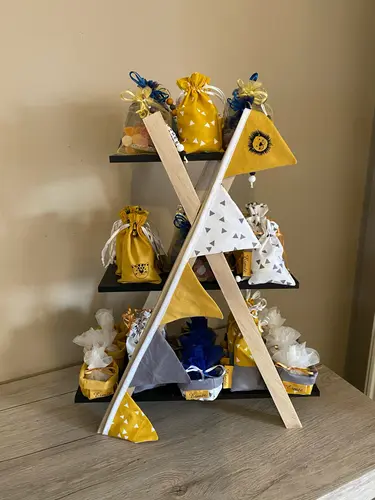 Wij hebben eerst een lijst gemaakt met iedereen aan wie we willen geven. Wij doen ook een babyborrel dus iedereen die naar daar komt/ uitgenodigd is hebben wij gerekend, per koppel 1 ding. Wij laten het ook maken door een suikerbonen winkel bij ons in de buurt. Wij hebben 115 stuks en hebben €470 betaald hier zit dan alles in wat wij gekozen hebben, dan ook het maken door de winkel zelf en 2 maanden huur van iets waar we het op wouden laten zetten als presentatie.