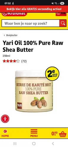 100% shea butter idd. ik heb die van de kruidvat (vierkante pot met bruine deksel) mn zoontje had paar dagen geleden ineens een heel schraal kinnetje en ik heb het 3x in gesmeerd en voelt weer helemaal zacht!