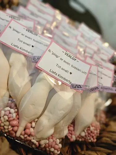 Ik had ook ongeveer zoiets en dan nog met een geboortekoekje van de jumbo erbij. Voor de collega’s van mijn team had ik een cadeautasje met deze erin, kneipp (ik knijp er tussen uit) en losse merci. Ook omdat zij mij echt de laatste weken door mijn verlof hebben geholpen en altijd klaarstonden
