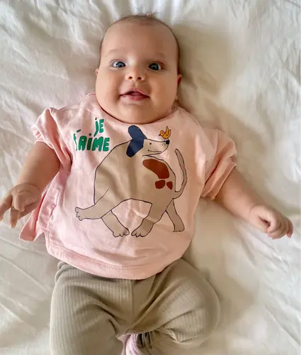Onze dochter is ook zwaarder dan gemiddeld. Ze is nu 15 weken, 62 cm en 7kg.