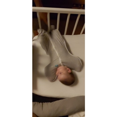 Hij slaapt nog in de puckababy, maar nu hij dus blijkbaar op zijn zij kan draaien gaan wij vannacht gewone slaapzak proberen