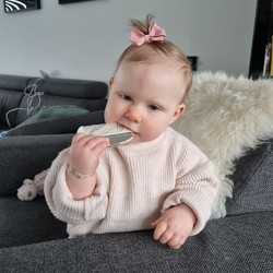 Huilen vanuit het niets en niet meer zelf willen eten. Verder veel willen knuffelen. Gelukkig wordt ze wel veel bezig gehouden dor haar oudere broers.