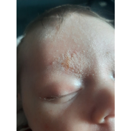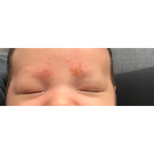 Ja mijn meisje had het ook bij haar wenkbrauwen. Ik smeer haar gezichtje elke ochtend in met baby olie en naar een paar dagen was het weg. Maar als ik haar huisje niet meer insmeer komt het ook weer langzaam terug.