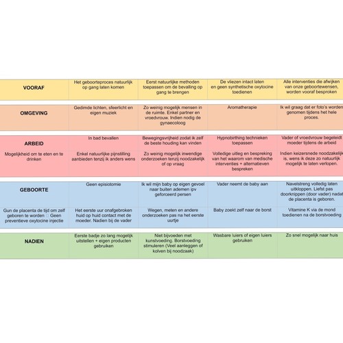 Ik heb van de verloskundige een opzet gekregen en die aangepast. Daar heb ik voorkeuren voor wijze van bevallen, pijnmedicatie etc in gezet. De praktijk moet natuurlijk uitwijzen wat daarvan terecht komt😁 verder heb ik er iets in gezet over de sfeer in de kamer en manier van communiceren. Ik vind het bv belangrijk dat ik in mijn bubbel kan blijven en dat mijn man dan aanspreekpunt is en iedereen een beetje uit m’n buurt houdt als het niet strikt noodzakelijk is.