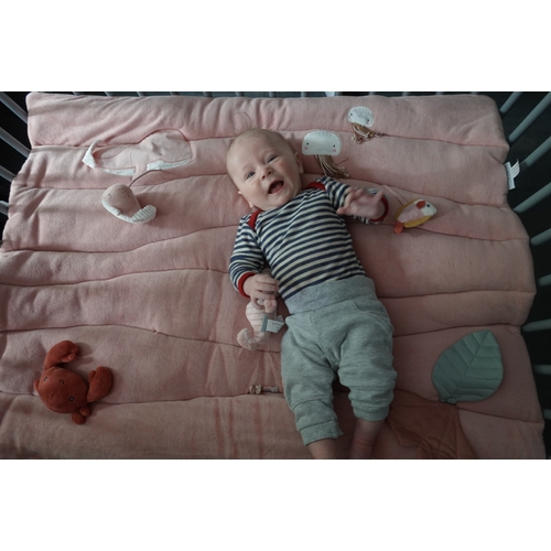 Ik moet onze zoon eigenlijk op een doek o.i.d. leggen, zeker na een voeding maar het kleed is zo lekker zacht dat ik dat ook zonde vind.