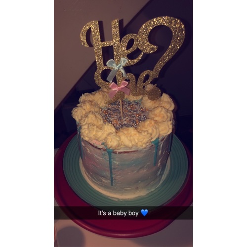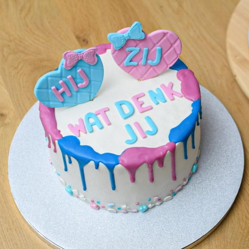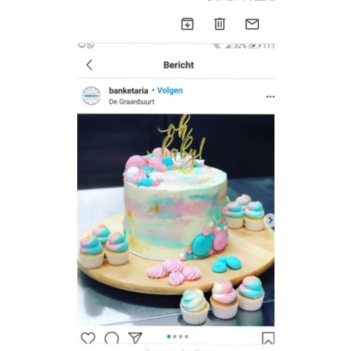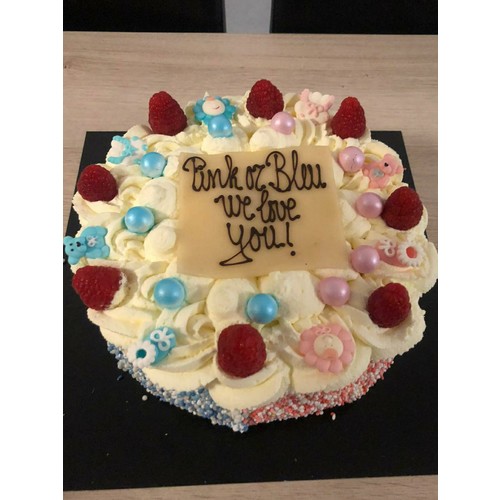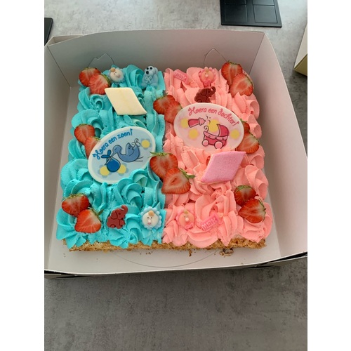 Slagroom taart bij de bakker laten maken 10 personen binnenkant was trouwens blauw 💙 deze kosten nog geen €15-, weet niet waar je woont maar deze taart heb ik laten maken bij bakken met plaizier:)