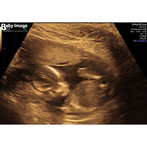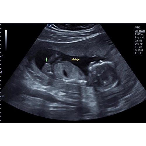 Bij 13w en 5 dagen zag je het ook vanaf zijkant en deze echo is 14w en 6 dagen