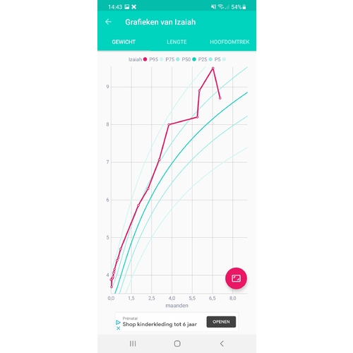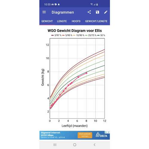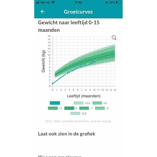 Ik gebruik de child growth app die de WHO curve gebruikt.