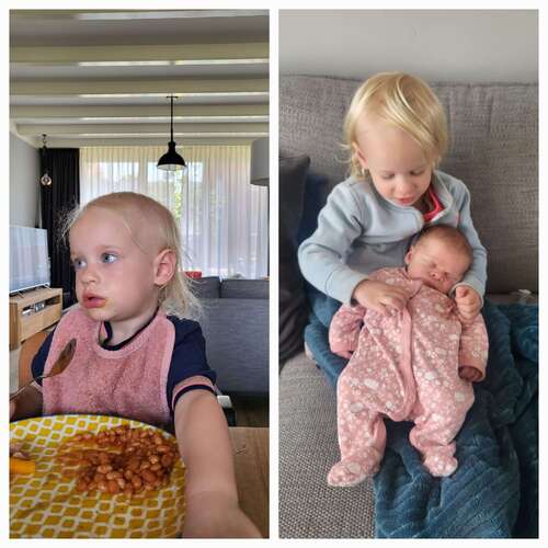 En niet om je te ontmoedigen, het is natuurlijk fantastisch, maar ik vind het wel best pittig met 2 nu hoor. Het gaat wel al de goede kant op, nu we weer enigszins iets van een ritme hebben, maar ik vond de eerste weken wel best zwaar. En de oudste werd snachts ook weer wakker, wilde steeds bij de baby kijken (voor haar natuurlijk ook een hele verandering). Maar gelukkig heeft dat maar een week of 3 geduurd.