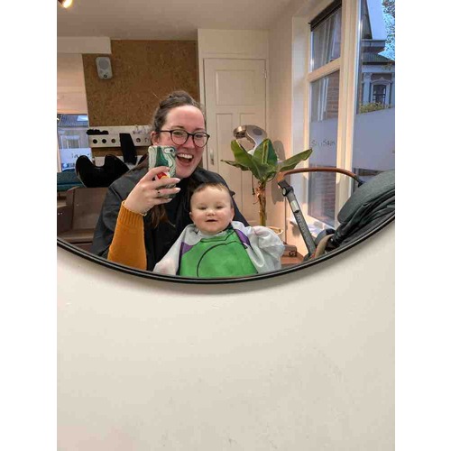 Ik heb een baby met een grote krullenbos. Ze heeft echt dik haar nu al maar ik vind het nog lang niet nodig om naar de kapper te gaan. Daarnaast vertrouw ik kappers gewoon niet met haar haar of mijn haar (ik ben surinaams dus heb een dikke afro en mijn dochter is half nederlands half surinaams). De kappers die ik ken zijn nou niet echt heel kundig met krullen en als ze dat zijn dan denken ze 'one size fits all' en dat is gewoon niet zo met krullen. Gelukkig heb ik een afro en doe ik al jaren mijn eigen haar en weet ik dus ook heel goed met mijn dochter haar haar om te gaan. Ze werd geboren met een volle kop stijl haar en dat is alleen maar meer gaan krullen en dikker geworden. Dus ik laat het lekker gaan en als ik zie dat het een knipbeurt nodig heeft dan doe ik het zelf. Ik ben gewoon nog geen echt goede krullenkapper tegengekomen die ik vertrouw.