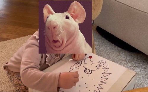 Niet de meest duidelijke foto, maar heb geen andere. Op een doos een papier plakken waarin ze wattenstaafjes kan prikken. Ik heb een egel gekozen zodat ze daar ‘de stekels’ in kan prikken. Daar was ze best een poosje zoet mee. Je zou het nog wat moeilijker kunnen maken door de wattenstaafjes een kleur te geven met stift en dat de dan in hetzelfde gekleurde gaatje geprikt moeten worden :)