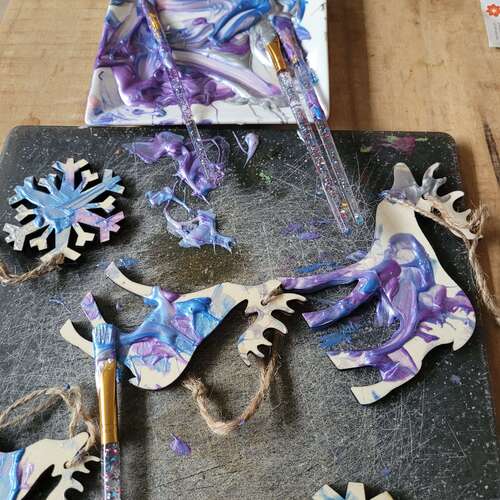 Met het kleuren, verven etc probeer ik maar een beetje af te wisselen met materiaal haha. Dit was onze 'kerstballen-collectie' van dit jaar.