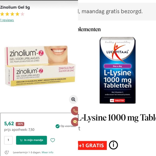 Die L-Lysine slikt mijn man nu ook alweer een tijdje om te voorkomen dat hi ...