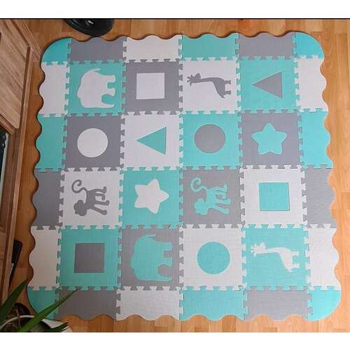 Wij hebben idd ook een puzzelmat. Ik heb 2 van deze besteld en aan elkaar gemaakt, zodat ie een stuk groter is. Zitten ook ribbeltjes op zodat ze niet zo makkelijk uitglijd.