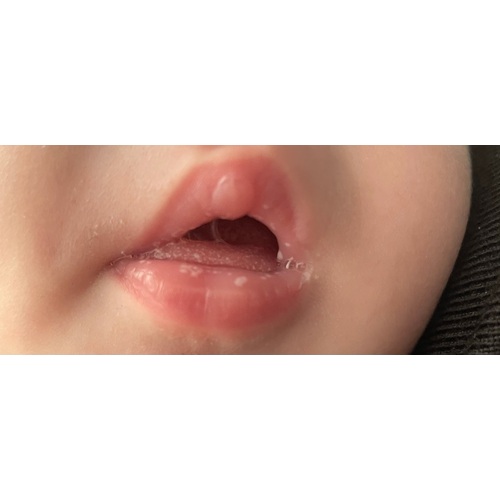 Bovenlip zuigblaar onderlip spruw! Op tijd handelen! Hier werd er ook gezegd alleen zuigblaartje hoef je niks mee. Maar het werd uiteindelijk hele lippen wit, wangen, tong, alles!! Op de tong lijken ook al kleine puntjes te zitten? Kijk of je die weg kan poetsen. Ik heb hier dus te laat actie ondernomen en nu knap lastig om er vanaf te komen 馃槕 het begon hier ook zo: