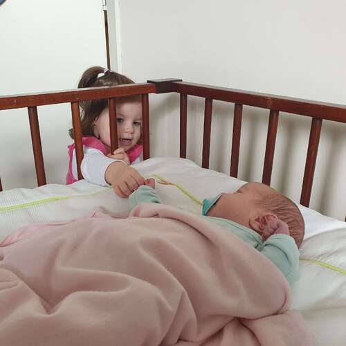 Zoontje wordt vandaag 2 jaar en dochter morgen 3 maanden. We hebben 'Bobbi en de baby' en 'Bobbi wordt grote broer' gelezen. Ook gaf hij veel kusjes aan de buik, die hij de baby noemde. Zijn eigen buik was ook een baby. 馃槀 Toen het wiegje eenmaal stond, ging hij daar vaak in kijken en vertelden we dingen als: 'als de baby er straks is, gaat de baby in het wiegje slapen. En een baby moet soms ook huilen, melk drinken bij mama' etc. Dat sloeg hij allemaal op en die verhaaltjes vertelde hij steeds meer na. Hij ging ook meer met de pop spelen, die hij een beetje als baby behandelde. Nu zijn zusje er al een tijdje is, is hij lief voor haar. Soms vindt hij het nog wel moeilijk dat ik met haar bezig ben, maar dat is ook niet gek.