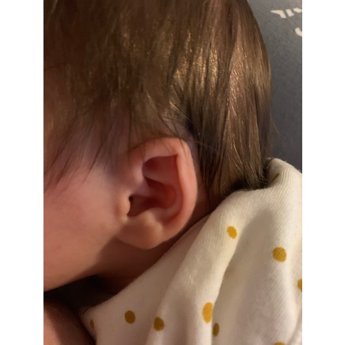 Wat bedoel je met buitenste oorschelpje deukt in? Is dat als hij er op heeft gelegen?