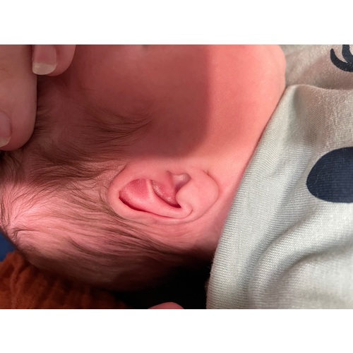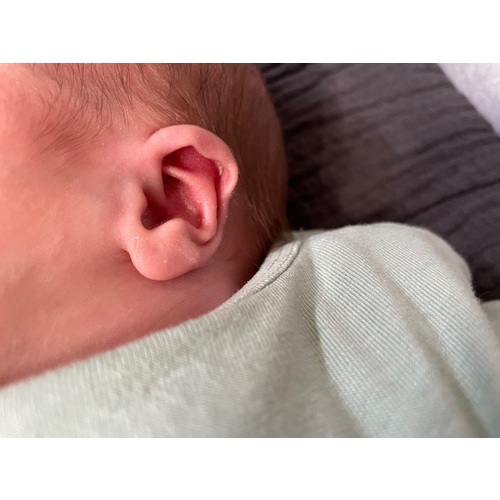 Mocht mn zoon ooit een bril nodig hebben, dan kan dat wel een uitdaging worden als we de oorschelpen zo laten.