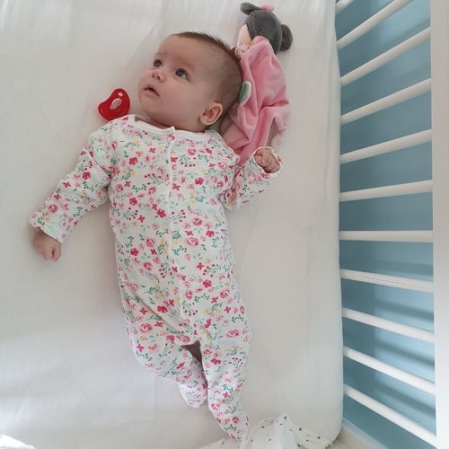 Nee met dit weer nu gewoon lekker kleertjes aan. Ze slaapt nog veel korte dutjes en dan blijf je bezig