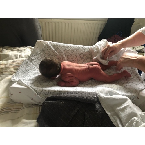 Nou niet echt ontspannen. Badje/ afdrogen is niet zijn favoriete bezigheid ;). Maar ook niet maximaal gespannen want hij heeft zn hoofd niet helemaal opgetild. Ja mooi he dat haar 🥰 heeft die van mn vriend, ik was kaal toen ik werd geboren. 🙈
