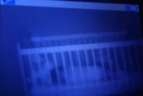Dan zou je eens een opname moeten doen en dan de kamer binnen gaan.. om te zien of er verschuiving is.. het is precies wel helemaal tot beneden aan bedje.. als het normaal aan de camera ligt dan zou je dat zwart ook aan voorkant van bedje moeten zien, maar dat zie ik hier niet.. inderdaad heel raar..