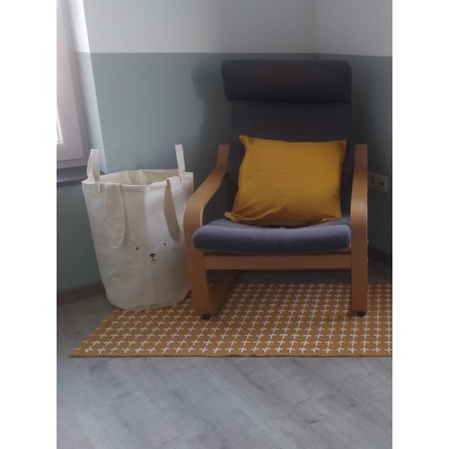 Deze keer staat er een ektorp stoel, 2e hands want inderdaad..van stof, dus vlekgevoeliger. Gelukkig een extra hoes erbij! Ik heb al even geoefend met een van mijn zwaarlijvige rode jeweetwel katers, en dit zit veel stabieler.. ik hoop dat ik deze keer geen hartverzakkingen ervaar bij de nachtvoedingen!