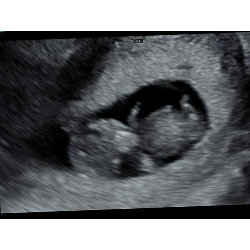 Dit was vrijdag met 10.6. Heel leuk om de armpjes en beentjes te zien bewegen. En echt uitgebreide echo gehad, hebben de doorsnede van de hersenen gezien (dan zie je een soort vlinder) en de maag en blaas (gewoon een zwarte stip 😂). Echt bizar wat er allemaal al in zo’n klein frummeltje zit!