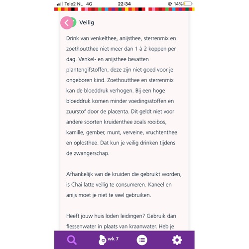 Ik zie hier heel vaak kruidenthee staan. Hierbij moet je heel goed letten op welke je kiest, in heel veel zitten namelijk plantengifstoffen!!!