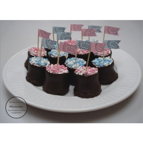 Bij mijn dochter 3 jaar geleden, heb ik (neger)zoenen gedaan. Zoals op het plaatje. Ook met twee kleuren, omdat wij het geslacht niet wisten.