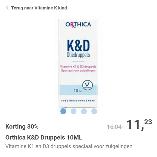 Wij gaan de vitamines van Orthica gebruiken. K en D in 1 flesje, opgelost in katoenzaadolie. Dus geschikt voor mensen/baby's met een pinda allergie.