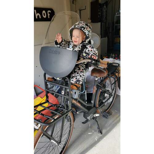 Heerlijk is dat fietsen! Ik doe mijn zoontje een regenoveral aan over zijn broek en jas. Doe express geen dikke winterjas aan dan. De regenoveral heb ik van de lidl online. Is helemaal water en winddicht echt een aanrader ook voor buiten spelen als het nat of kouder is. Verder een dikke muts en wandjes
