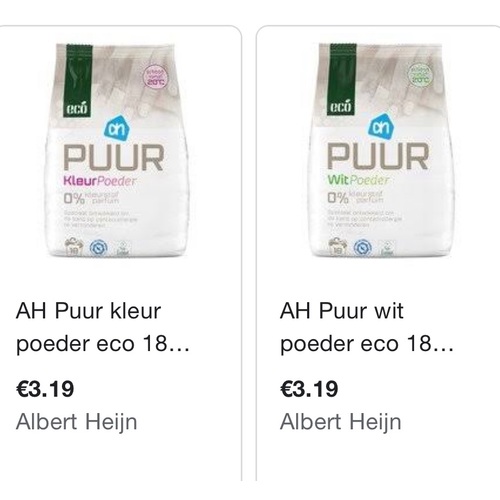 De AH heeft wel een Eco merk nog, Eco puur poeder vind ik erg fijn spul. Ee ...