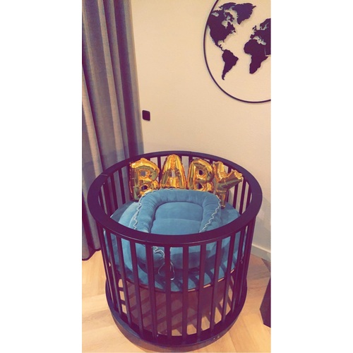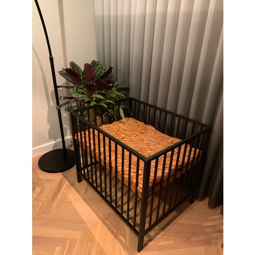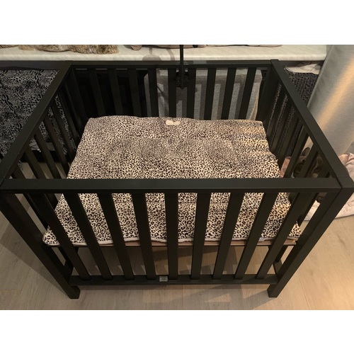 Ja klopt zwart hoeslaken van Jollein. Boxmatras vond ik teveel afsteken qua kleur anders. Die heb ik later ergens anders gekocht, maar heeft v Asten waarschijnlijk ook wel!