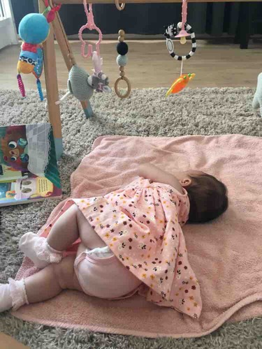 We hebben ook een met een klein kleed, en wat makkelijk opgevouwen kan worden tot plat pakketje. Iets minder favoriet, maar wel handig mee te nemen als we op stap gaan.