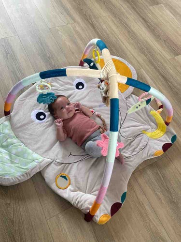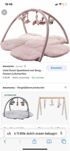 Wij hebben deze van Little Dutch! Ik leg haar altijd zo neer dat ze met haar beentjes tegen dat boogje kan trappen, waardoor ze zelf de diertjes laat bewegen. Ze kan zich er heel lang mee vermaken!!