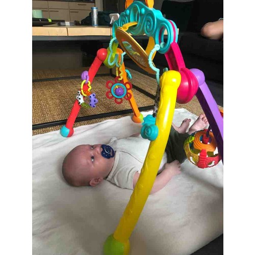 Wij hebben de babygym van Fisher-Price. Er zit ook een muziekje bij (in de leeuw) en heeft een leuk deuntje waar je niet gelijk gek van wordt. 😉