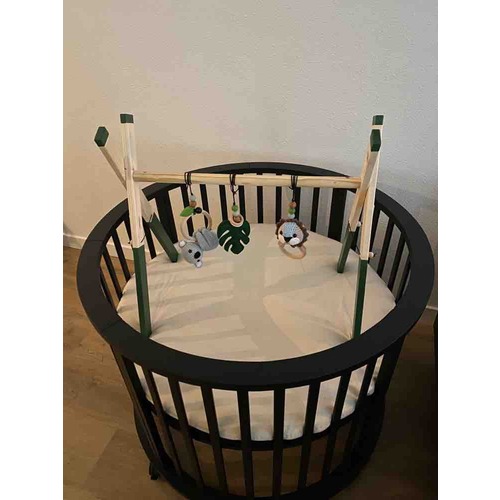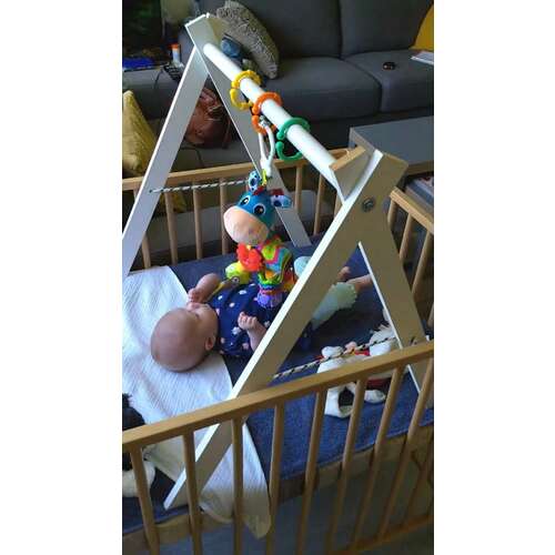 Wij hebben destijds voor de oudste zelf een "babygym" gemaakt. Konden we haar favoriete speeltjes aan hangen en ook af en toe eens afwisselen. Misschien ook nog een idee.