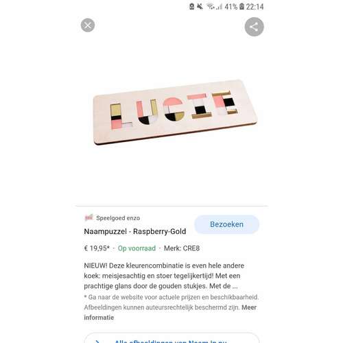Ik zou graag iets leuks met de naam van ons meisje op de kinderkamer zetten, iets van een treintje of blokken.