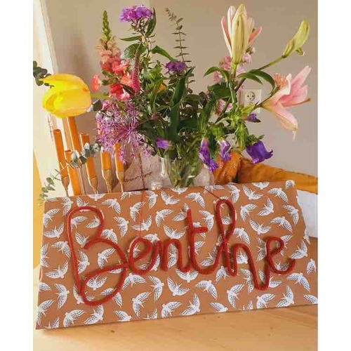 Wij hebben dit als kraamcadeau gekregen! Haar naam gehaakt erg leuk om te krijgen en heeft een mooi plekje gelegen op haar kamertje馃槉