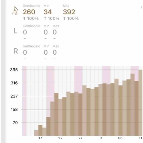 Heb je een powerkolf gehuurd of gebruik je een eigen? Dat kan best uitmaken aan het begin. Bij mij kwam het ook langzaam op gang maar door heel regelmatig te kolven, fenegriek en mariadistel te slikken, cashewnoten te eten en zoveel mogelijk te ontspannen is de opbrengst ml voor ml toegenomen. Aan het begin kreeg ik er maar max 30ml in totaal uit, nu heb ik soms 150ml in een sessie. Die grafiek is mijn kolfopbrengst, de daling komt doordat ik nu weer bijna volledig borstvoeding geef en daardoor (bijna) niet meer kolf.😊 Maar zoals je ziet is de productie voor die tijd heel gestaag toegenomen. Hopelijk bij jou ook, succes!
