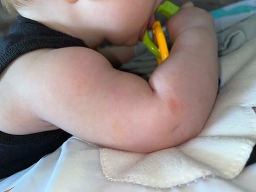 Rolt je zoontje al? Mijn zoontje heeft namelijk ook van dat soort vlekjes op z鈥檔 arm van het op en neer rollen :)