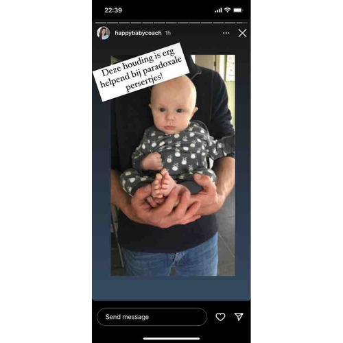 Hier net hetzelfde, doorheen de dag zonder al te veel moeite 4 poepluiers maar in de vroege ochtend ligt ie te kreunen en te persen in zijn bedje. Hij kan er echt boos van worden, zo zielig. Ik pak hem dan bij me en duw zijn beentjes hoog zodat hij kan duwen en soms lukt het dan om de nodige scheetjes te lossen. Ik zag ook op instagram via een osteopaat een houding dat hierbij zou helpen (foto), uitgetest en het werkte goed! Verder krijgt hij al probiotica en volgens osteopaat geen blokkages of spanningen dus ook een mysterie voor ons.