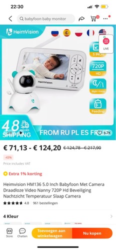 Wij hebben deze heel blij mee! Werkt super in een donkere kamer, geluid kan hard en snachts kan het scherm uit als ze gaat huilen schiet alleen het geluid aan. Ik ben blij dat ik niks via me telefoon heb zo kan ik wls ik weg ben ook niet stiekem kijken