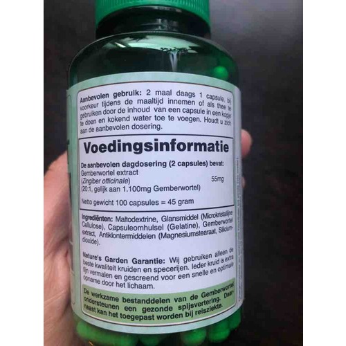 Dankjewel voor je reactie. Op mijn potje staat echter dat 2 capsules 55mg gemberwortel bevat en de aanbevolen hoeveelheid is 2 x 1 capsule. Maar jij adviseert de dubbele hoeveelheid?